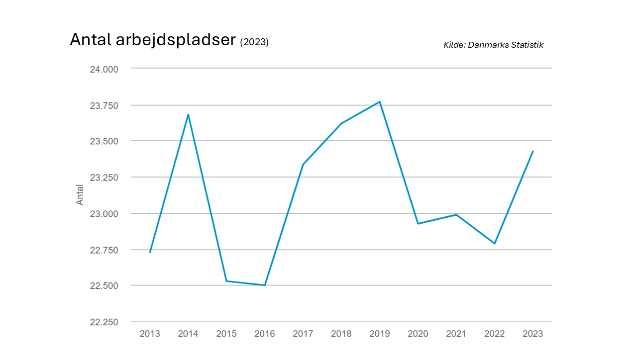 På figuren herunder ses udviklingen i antallet af arbejdspladser i Glostrup fra 2013-2023.